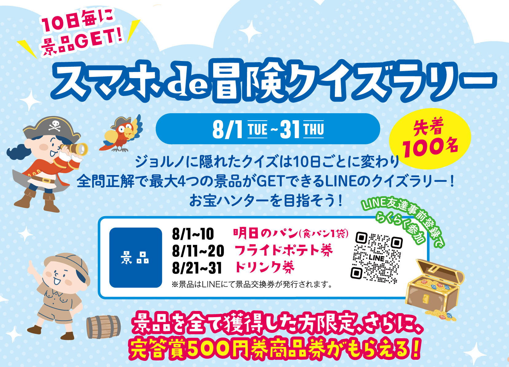 8月1日 10時からスマホのLINEがあればだれでも参加できるわくわく冒険クイズラリーを開催✨