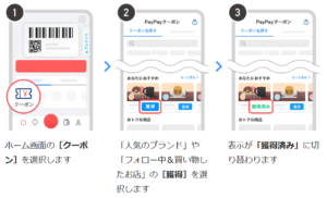 まずは、ペイペイ画面からクーポンを獲得しよう♪(水色の鳥が目印🐤)