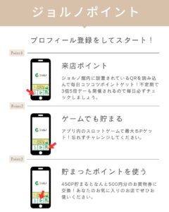 ジョルノ館内に設置されているQRコードを読取ポイントゲット!