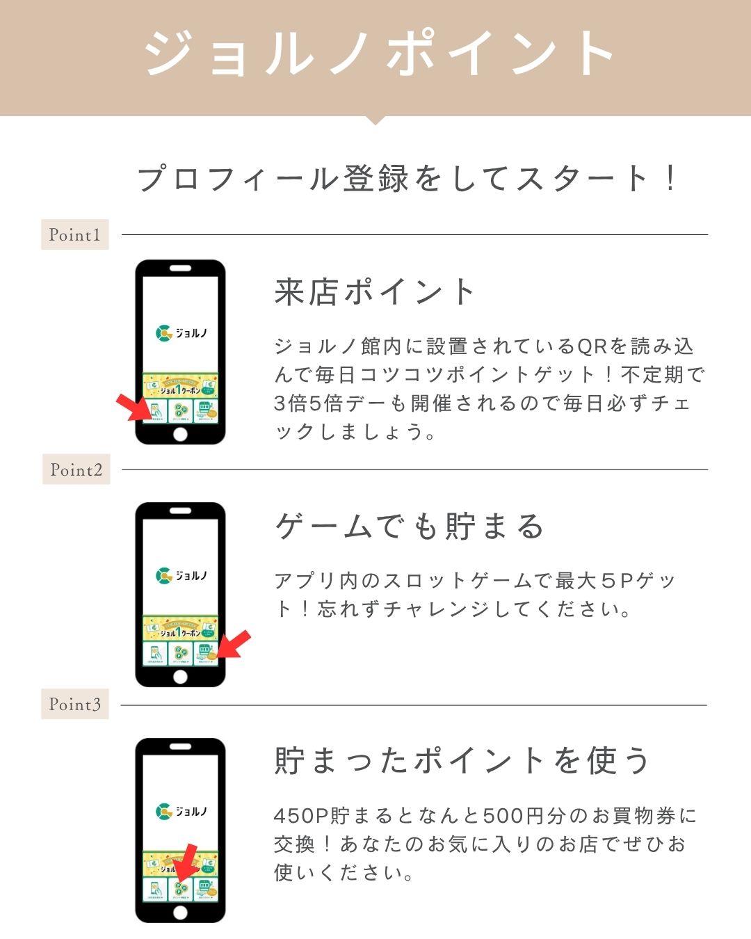 不定期で3倍5倍デーもあるので毎日ジョルノに来れば来るほど貯まる!